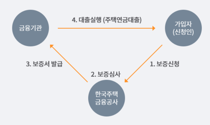 이를 위하여 공사는 연금 가입자를 위해 은행에 보증서를 발급하고 은행은 공사의 보증서에 의해 가입자에게 주택연금을 지급합니다.